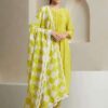 Women’s Cotton Ethnic Set with Kurta, Palazzo & Dupatta(M)